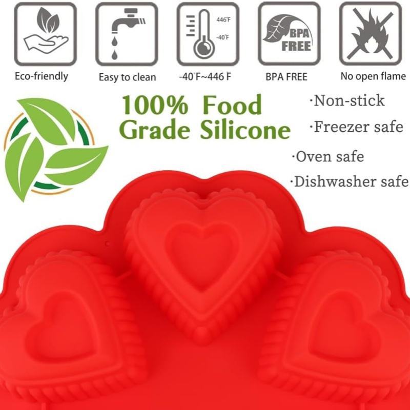 * MULTIPURPOSE: These silicone pans can be used to make a variety of items including heart mini cakes, ice cubes, chocolate candy, fondant, Valentine’s Day bath bombs, jello molds, hot chocolate bombs, soaps and much more.