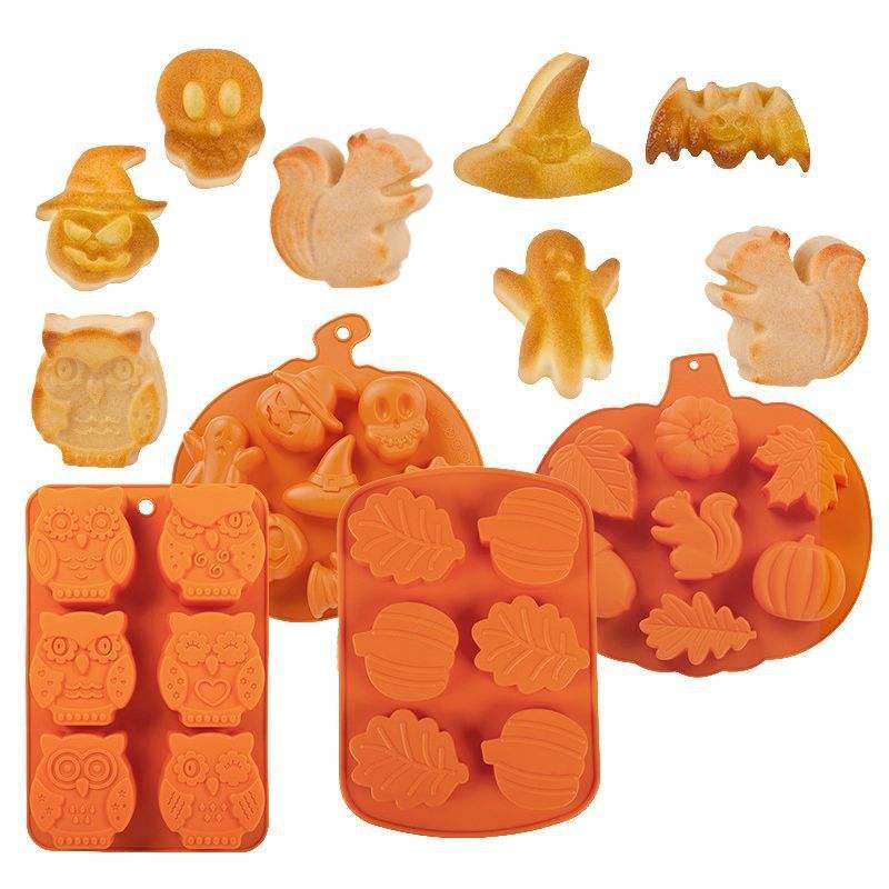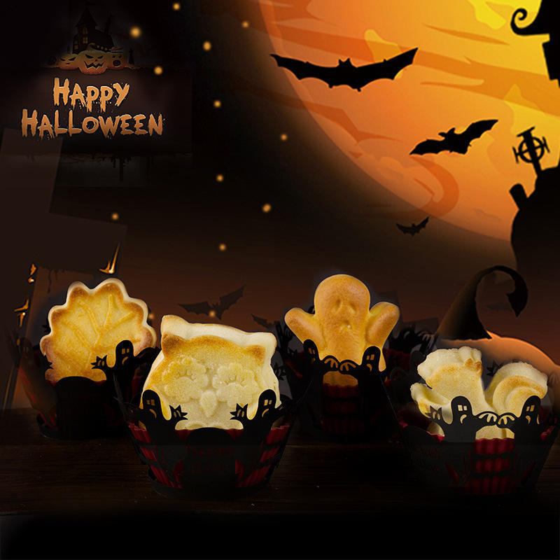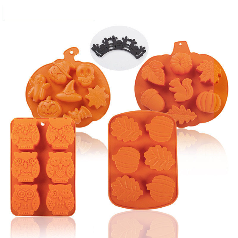 Halloween Soap Candle Candy Muffins Chocolates Mold Silicone Cake Mold with Pumpkin Spider Net Brain