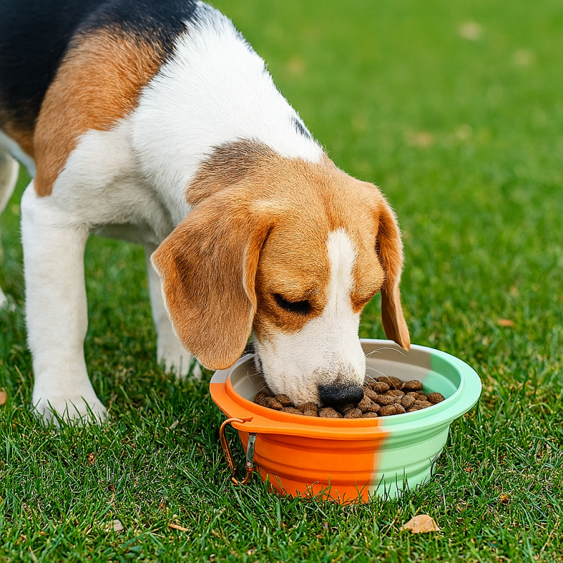 hikes or Daily walk. The flexible silicone structure pops open instantly for meals and folds into compact storage. Lightweight yet durable for backpack pockets or pet travel kits.