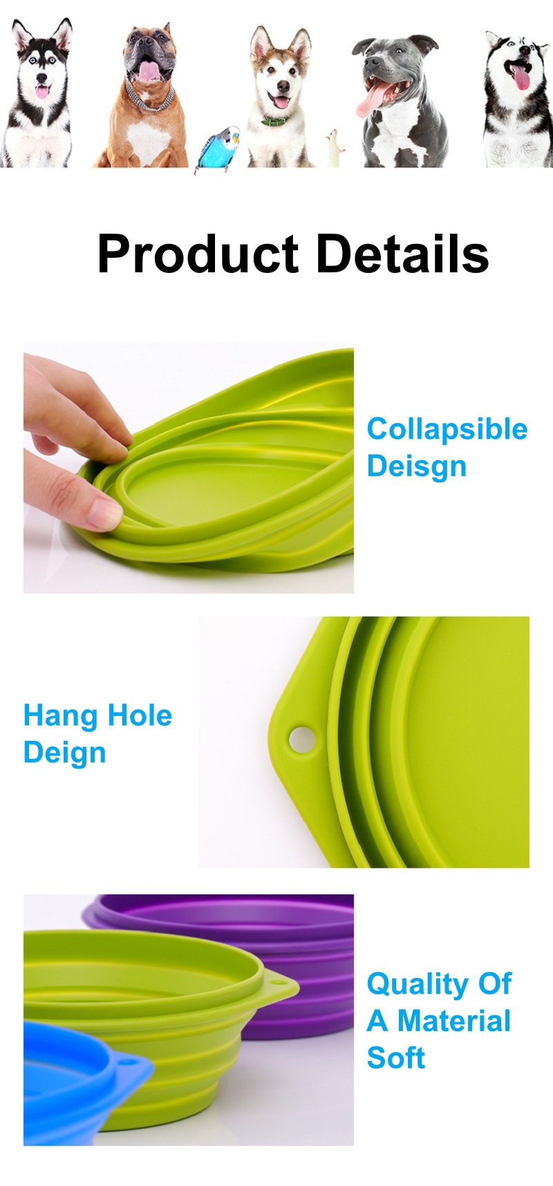 daily walks, and dog park visits. The space-saving silicone bowl transitions seamlessly from outdoor adventures to home use,storing flat in purses, diaper bags, or kitchen drawers.