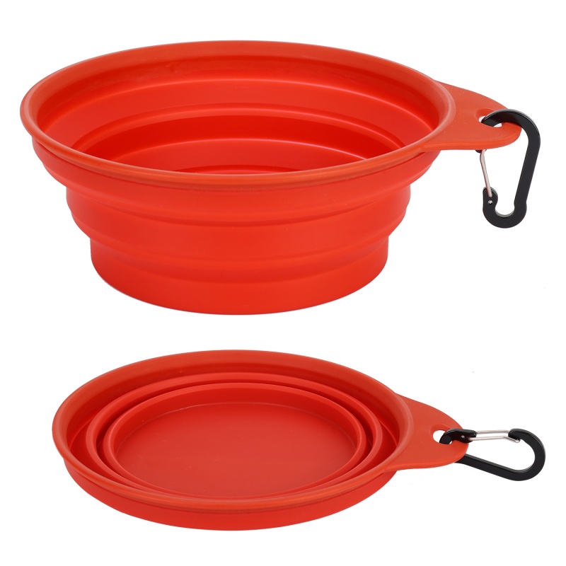 * Portable Collapsible Design - Space-saving foldable bowl features a built-in carabiner clip for hands-free carrying during